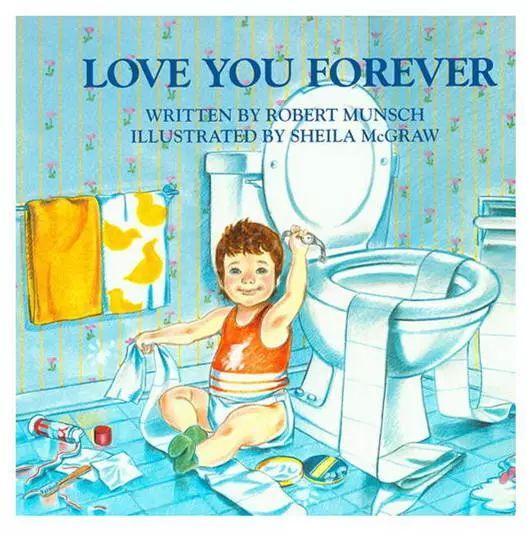 这本书的创作源自作者罗伯特· 蒙施(Robert Munsch)写给自己两个夭折的孩子的歌:“I’ll love you forever......”绘本中的那个妈妈一直抱着孩子念着这几句话,伴随儿子慢慢从呱呱落地的小婴儿,开始满屋子乱跑,进入少年叛逆期,最后离家独立长大成人,而自己已然老去,仍然呢喃:Love you forever...