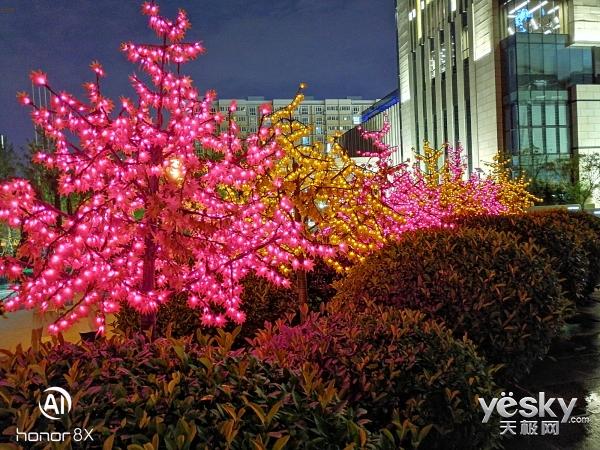 值得一提的是,光荣8X系列也引入在高端旗舰才有的AI超级夜景——手持夜景模式。最长6s长曝光,通过AI技术防抖,提升夜景下亮度、颜色、噪声表现;通过AI算法稳定画面,提高夜景照片动态范围,在极暗环境下调高画面亮度,稳定清晰。另外,光荣8X还支持超级慢动作、3D人像光效等功能。实际拍摄中,成片样张的画面更加鲜艳,风景与美食的色彩表现更加饱满。