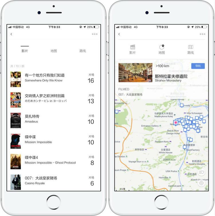 除了能按照城市和电影来选择场景之外,它还会将电影中几分几秒拍摄的场景还原到真实的景点当中。选取了具体的取景地之后,你还能在应用里找到详细的路线规划。