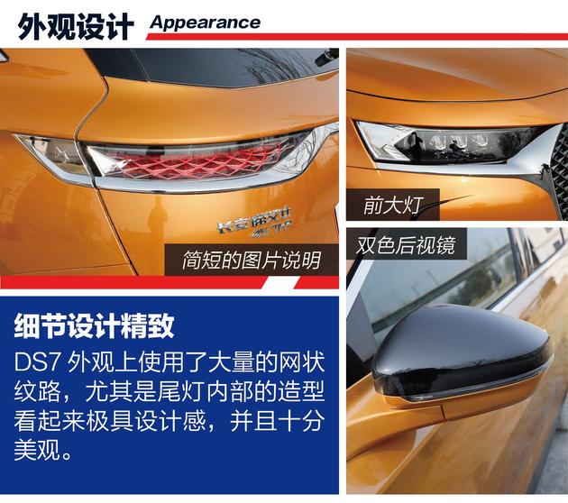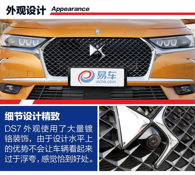 DS7的精致感首先体现在外观部分,DS7的外观设计并没有特别夸张的部分,而且很多细节的点缀很好的体现出了车辆的精致感。