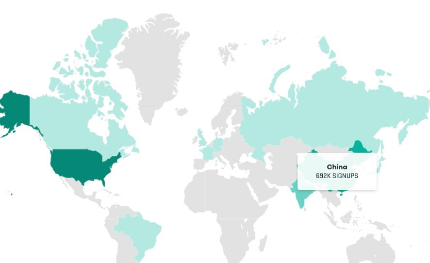 注册用户最多的国家:中国排第二