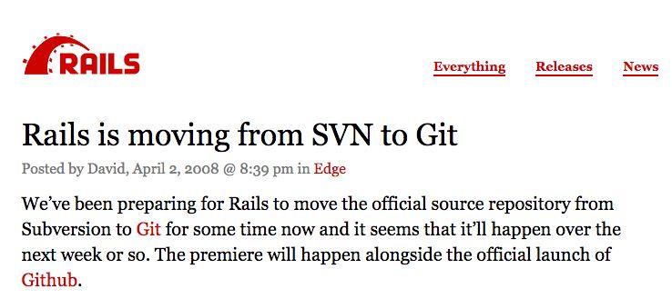 当时,GitHub 还处在内测阶段,没有正式上线。GitHub 本身就是用 Rails 写的,这件事为 GitHub 带来了不小的影响力。