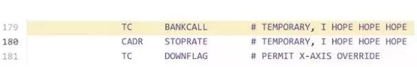 60 年代的程序员也有幽默感,不信就去 GitHub 上看看阿波罗 11 号的代码。比如这个:临时代码一直用到了月球上。
