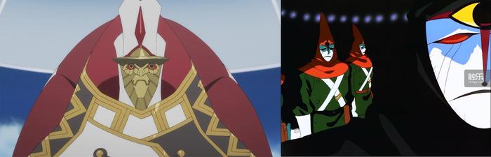 比如,故事中存在着一个掌控人类的主宰群体,被称为“爸爸们”,这个群体的造型,以及其代表的团体所延伸出来的“大人”阶层,有着十分微妙的外观,让任何一个看过《蓝宝石之谜》的老伙伴都感到迷之神似——而作为同样注重描述男女感情发展,由GAINAX于1990年制作的《蓝宝石之谜》,要比《DITF》好看得多。