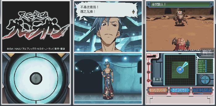 《天元突破》在NDS上出品的同名游戏,规模虽小,但制作极其良心。尽管这一时期由于NDS和GBA平台开发成本较低,导致有巨量的低质量改编作品圈钱,但此时的KONAMI依旧坚持住了过往的素质——泛泛之辈的改编是骗自家粉丝的钱,而KONAMI改编的器量,却总能拉别家粉丝过来掏钱。