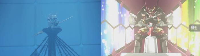 《DITF》里“驾驶着机器人去驾驶更大的机器人”(左)与《天元突破》里的同类情况(右)